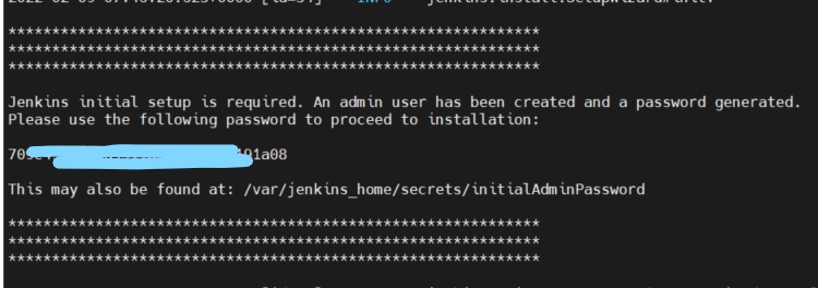 본인은 docker-compose 파일에 jenkins로 컨테이너 이름을 주었으므로 sudo docker logs jenkins 명령어를 이용했다.